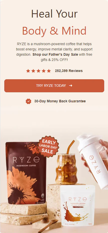 RYZE has completely transformed my mornings! The smooth, earthy flavor combined with the natural energy boost keeps me focused all day without the jitters. I love knowing I'm getting the benefits of functional mushrooms in every cup.